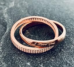 - ♥FÜR UNVERGESSLICHE MOMENTED – Das extravagante schlichte Design des 925 Rings besteht aus 2 ineinander verschlungenen Ringen. Zwei flexible drehbare Ringe graviert mit den Worten ” i love you”, was bedeutet “nie verraten, nie trennen”. Dieser wunderschöne rosegolde Ring eignet sich als außergewöhnliches Geschenk für Paare oder die Liebste. Ein unschlagbarer Liebesbeweis – egal ob klassische Antragsringe oder Verlobungsringe, exklusive Geschenke für Frauen, die das Besondere lieben.