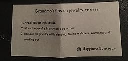 - Verpackung und Schmuckpflege: Jede Bestellung wird in einer Happiness Boutique Geschenkbox geliefert. Am besten bewahren Sie Ihren Schmuck in einem Schmuckkästchen oder in einem verschlossenen Beutel.